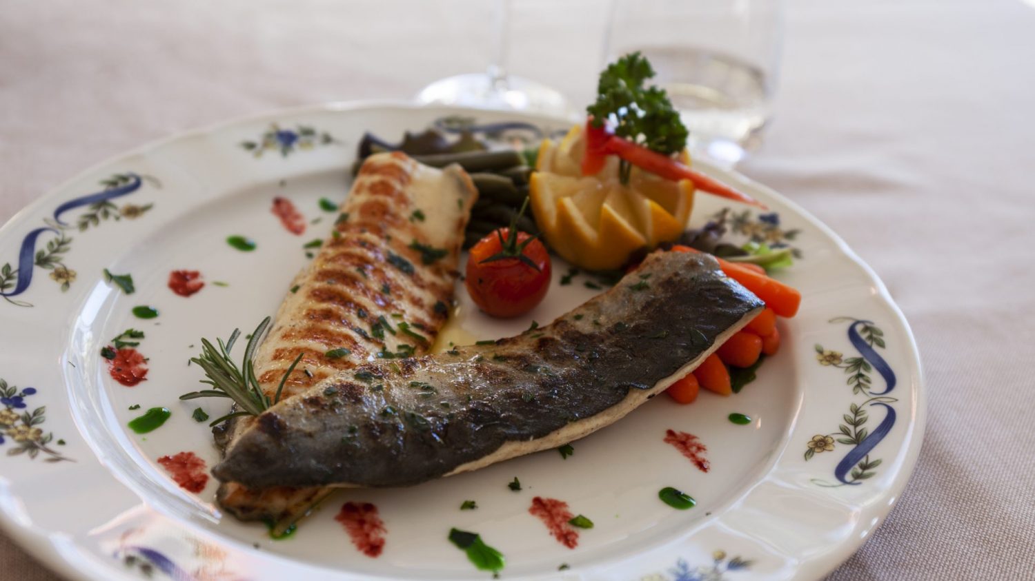 Cuocere i filetti alla griglia o sulla piastra precedentemente insaporiti con sale agli aromi e cospargerli di prezzemolo tritato. In un pentolino scaldare un pò d’olio con del rosmarino, farlo rosolare leggermente e versarlo sopra i filetti. Servire con patate saltate rosolate con pancetta.
